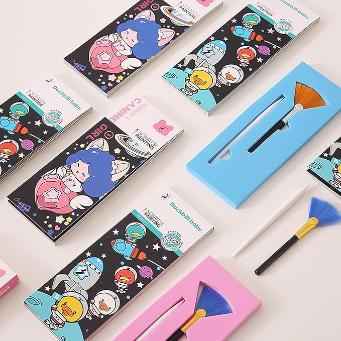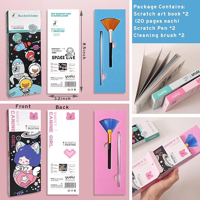 - ✨Cute and interesting: The design of the pattern is simple and cute, each page is a surprise, attracting children to continue to create and record!Package Included: 2 x Themed Scratch art Books (20 pages each, Total 40 pages), 2 x Scratch Pens, 2 x Clean Brushes