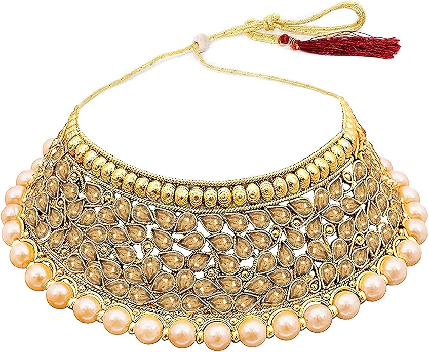 Aheli Wedding Designer Choker Necklace with Jhumki Earrings Maang Tikka Set Ethnic Bollywood Traditional Fashion Stylish Jewelry for Indian Women & Girls