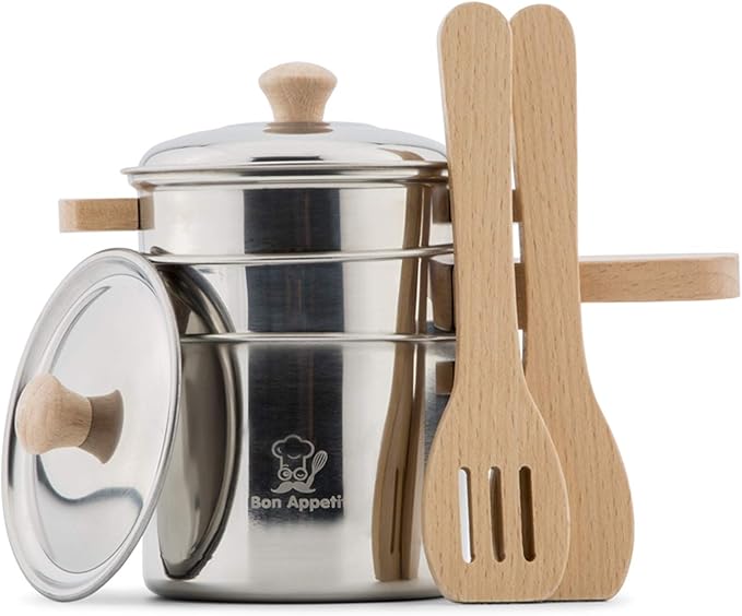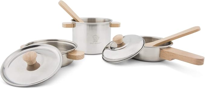 - This pan set from New Classic Toys is the perfect addition to any children's kitchen.