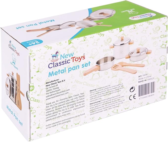 - This pan set from New Classic Toys is the perfect addition to any children's kitchen.
