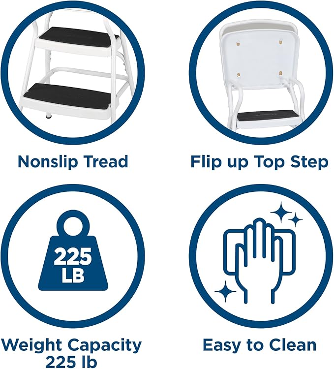 - FLIP-UP SEAT - Seat quickly flips up to transform chair into a step stool