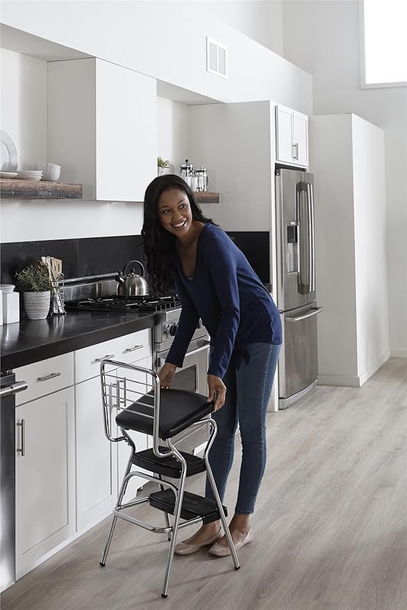 COSCO Stylaire Retro Chair + Step Stool with Flip-Up Seat, Black