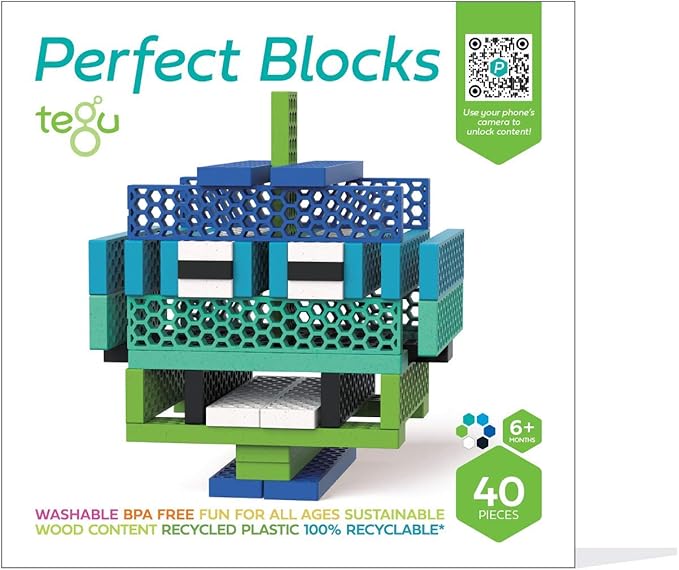 Tegu 40 Piece Perfect Blocks Building Set Green & Blue (Amazon Exclusive)