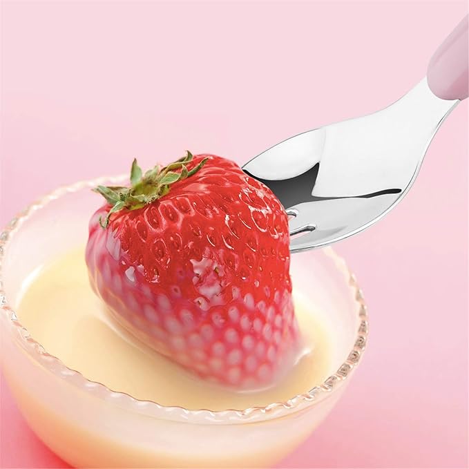 - Easy to Self-feed: This toddler silverware set is curved handles which are easy for child to grab, help your baby learn to eat. Never need to worry about sharp edges will damage babies. Deeper spoon bowl make scooping foods and liquids more easier. Great for your babies learning self-feed.