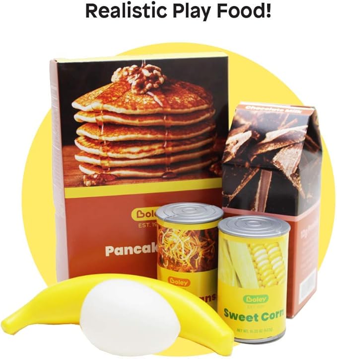 - LEARN LIFE SKILLS: Everyone's gotta eat, so let's have some fun on a grocery run! Your child will learn the names of all major food groups and how to read product labels as they practice running errands. Boley Mart Groceries Play Food Set pairs perfectly with kitchen playsets and cooking toys!