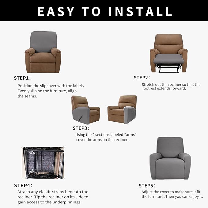 - PERFECT FIT: This innovated 4 Piece recliner couch cover is crafted from 100% waterproof Microfiber Fleece fabric, including 2 piece of arm cover and 1 piece of seat cover and 1 piece of back rest cover (fit sitting width between 23-34 inch). Feature one-size-fits-most, kindly measure before ordering.