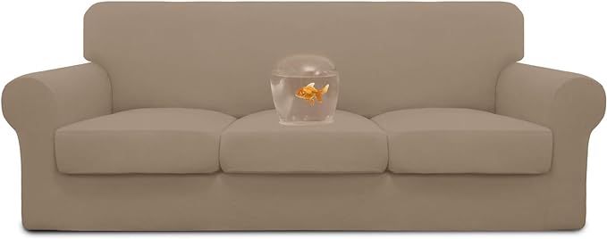 Easy-Going 100% Dual Waterproof Stretch Soft Couch Cover for Dogs, Sofa Slipcover for 3 Separate Cushion Couch Leakproof Furniture Protector for Kids, Pets Camel