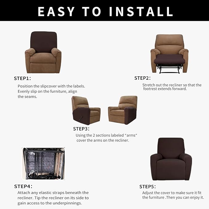 Easy-Going 100% Dual Waterproof Recliner Cover Stretch Soft Couch Cover for Dogs, Sofa Slipcover for Recliner Couch Leakproof Furniture Protector for Kids, Pets Chocolate