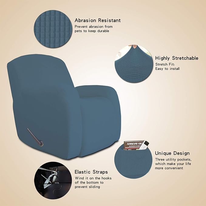 Easy-Going Oversized Recliner Stretch Sofa Slipcover Sofa Cover 1 Piece Furniture Protector Couch Soft with Elastic Bottom Kids,Polyester Spandex Jacquard Small Checks(Oversize Recliner,Bluestone)