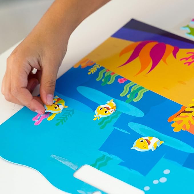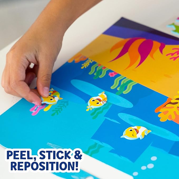 - 100+ REPOSITIONABLE BABY SHARK STICKERS: Join the Baby Shark family for hours of JAW-some fun! Peel, stick, and move them around over and over again!