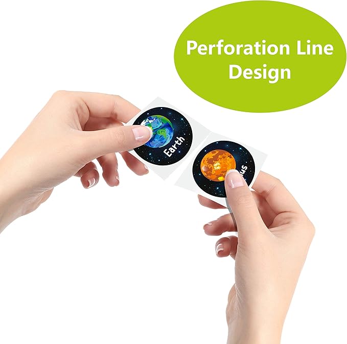 - Include: 600 pcs in 2 rolls. Each measures 1.5” in diameter. A must have piece for space lover a great educational teaching aids for kids.