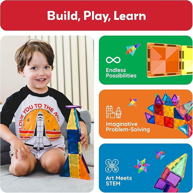 - CREATIVITY BEYOND IMAGINATION - Promotes the child brain development. Encourage creativity which is the key factor to success in today's ever-changing environments. Fun and entertaining, perfect educational presents for pre-school and school age children that will never go out of style. Magnet Tiles Building block stackable playboards toy kit is designed fosters hand-eye coordination and problem solving skills of all ages including preschool, group activity, classroom teamwork and kindergarten