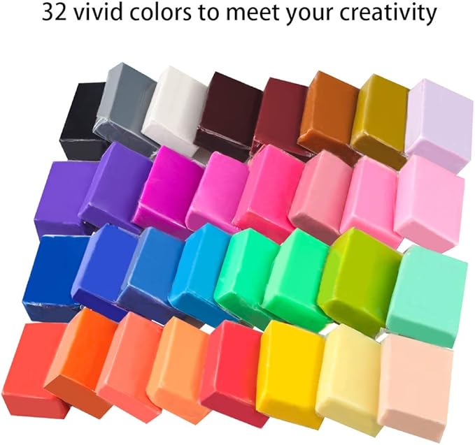 - ✨ Soft Type of Polymer Clay: This set comes with 32 colors (approx. 0.3 oz/block) of soft polymer clay, which is easy to condition and work with by hand. A good choice for kids or small art projects and mock-ups of new ideas. Flexible for color-blending, stamping and good for accepting acrylic paints and alcohol ink markers after baking.