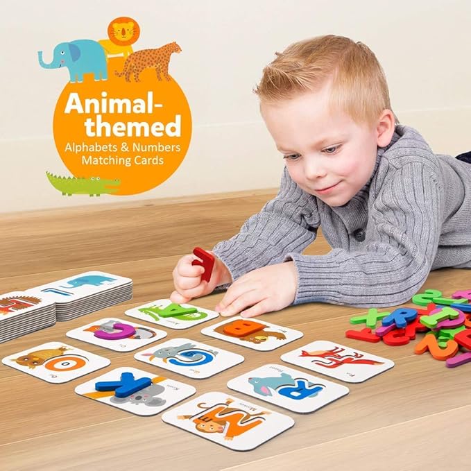 - 【Fun & Education】Match the alphabet letters or numbers with the animal picture base on the clue of shape and color. Each alphabet and number flash card has different animal. These letter game can help children to develop eye-hand coordination, color recognition, fine motor skills, visual perception skills, problem-solving skills.