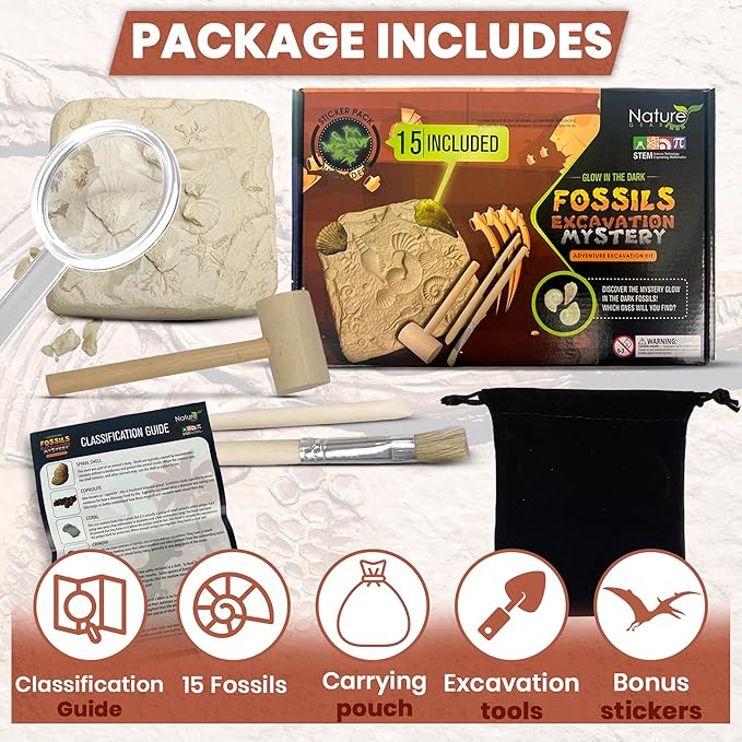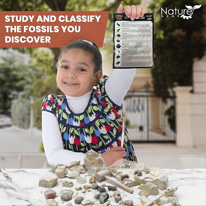 - Complete Exploration Kit: Our kit includes everything your child needs for an epic fossil hunt; With safety gear, detailed guides, a variety of fossils, and a set of stickers, it's the ideal science kit for young adventurers to dig, learn, and explore