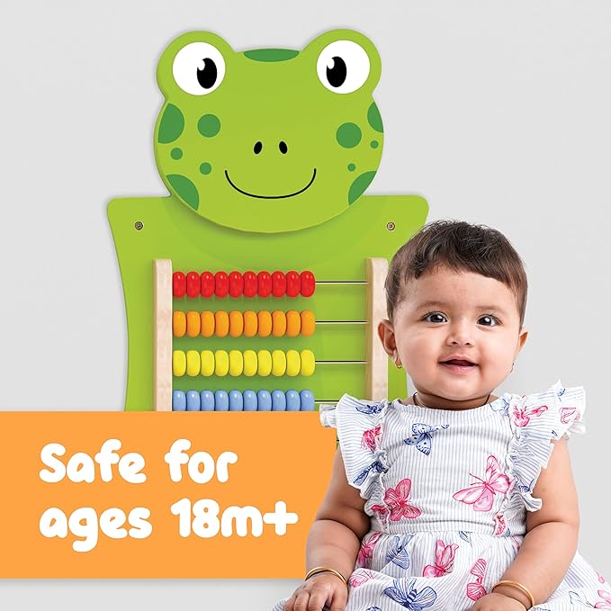 SPARK & WOW Frog Activity Wall Panel - Ages 18m+ - Montessori Sensory Wall Toy - Abacus Activity - Busy Board - Toddler Room Décor