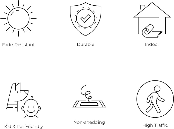 - PET-FRIENDLY AND DURABLE: Durable for high-traffic areas, soft and comfortable area rug perfect for families with kids; Low-pile synthetic rug fibers won’t trap dirt and debris, so they’re pet-friendly and easy to clean