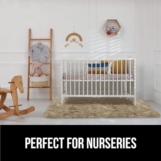 Gorilla Grip Fluffy Faux Fur Rug, 6x9, Machine Washable Soft Furry Area Rugs, Rubber Backing, Plush Floor Carpets for Baby Nursery, Bedroom, Living Room Shag Carpet, Luxury Home Decor, Beige