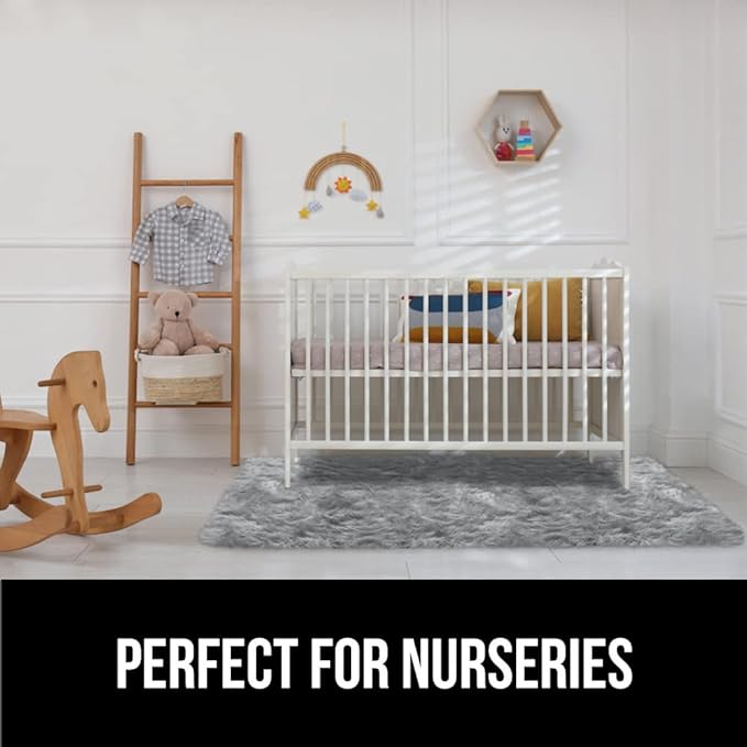 Gorilla Grip Fluffy Faux Fur Rug, 6x9, Machine Washable Soft Furry Area Rugs, Durable Rubber Backing, Plush Floor Carpets for Baby Nursery, Bedroom, Living Room Shag Carpet, Luxury Home Decor, Gray