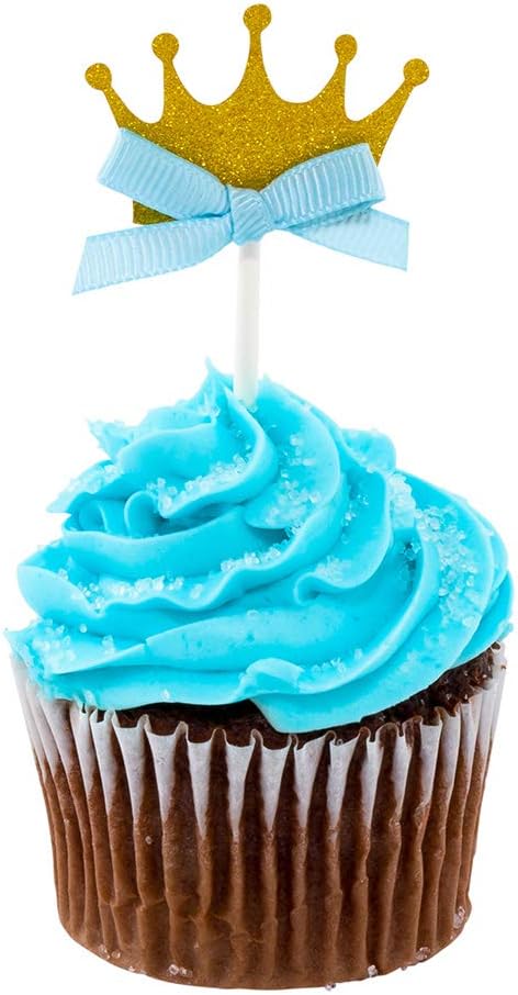 - FASCINATING DESIGN: These tiara birthday cake toppers are covered in gold glitter with a blue bow to add to your cupcake decoration. Surprise your loved ones with beautifully decorated cakes!