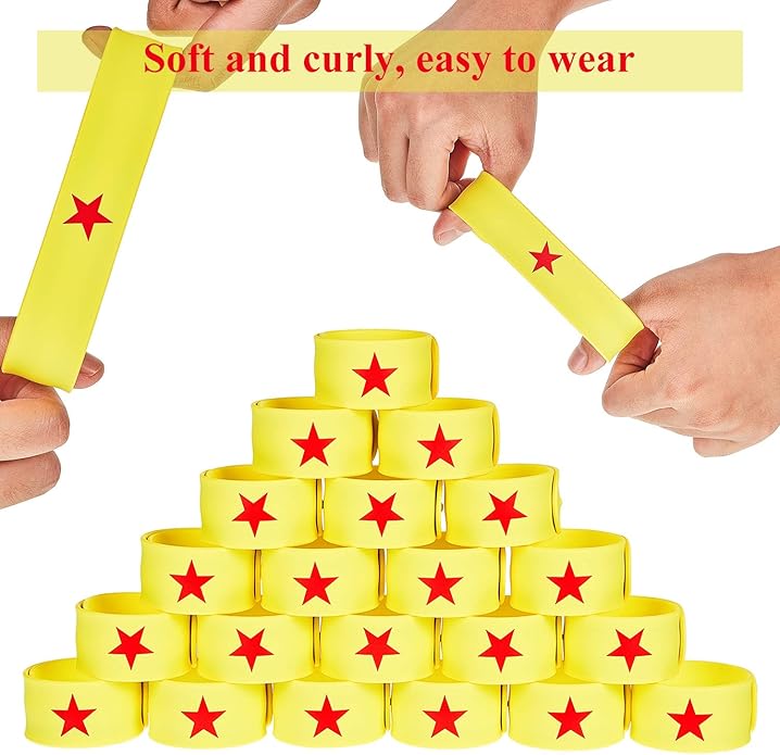 - Safe and reliable material: our yellow slap bracelets with red star are made of durable metal core wrapped in soft natural silicone, that is safe and reliable material, the edge is firmly sewed, comfortable to wear, won't break easily