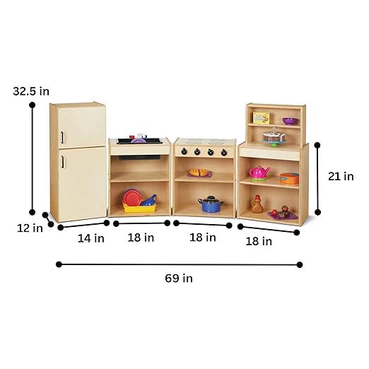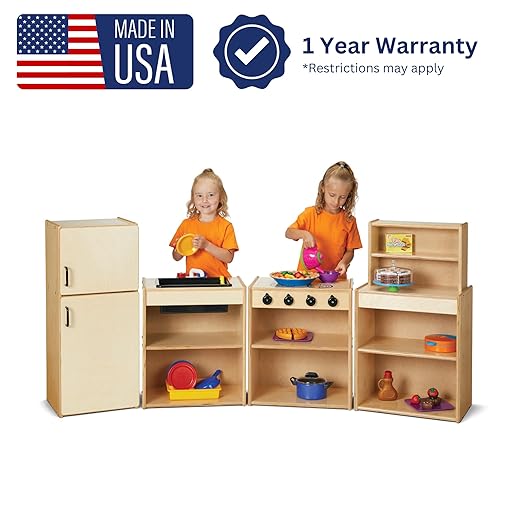 - CLASSROOM, DAYCARE, & HOME USE - This kids kitchen allows children to interact and use their imagination in a variety of settings. Our Play Kitchen 4 Piece Set is perfect for your classroom, daycare, preschool, home, montessori, and more.