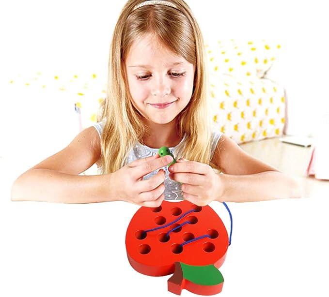 - Attractive Design: With its sturdy and wood construction with water paint, , this lacing toy is not only practical but also visually appealing. The cute apple shape and caterpillar "eating" design make it a perfect addition to any child's toy collection.