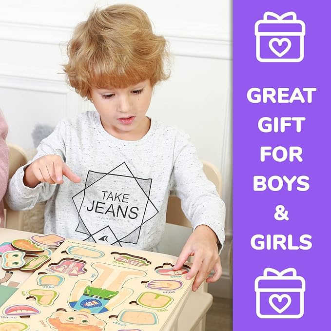 - TODDLER LEARNING TOYS: Human Body wooden puzzles boards are interesting for toddlers ages 2-4, kids ages 3-5 and even for kids ages 4-8; This educational set improves eye-hand coordination, logic, basic knowledge of our body and prepares for school