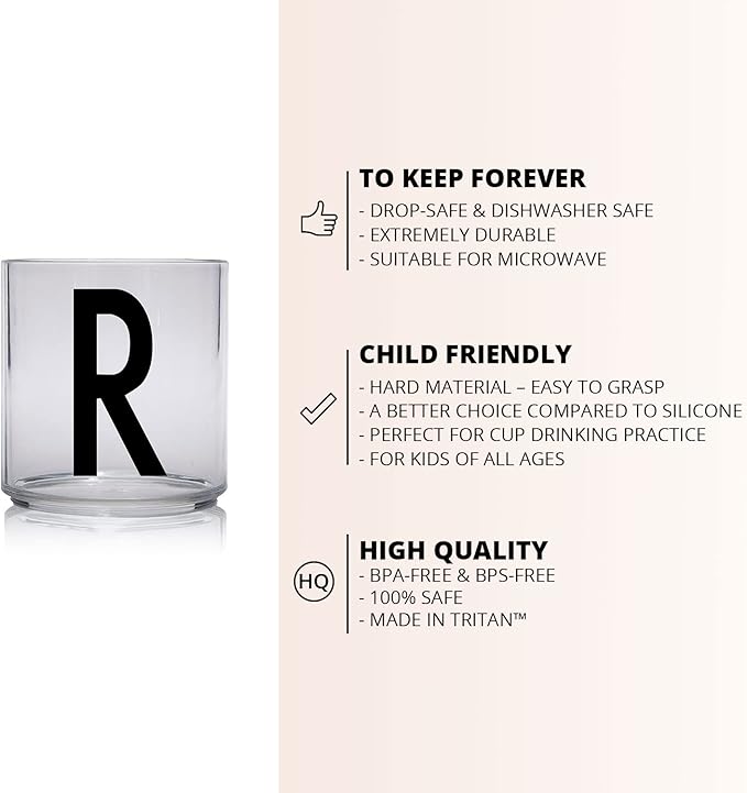 - SUSTAINABLE : Save plastic and disposable packaging by using this kids learning cup which is made up of tritan. Use the glass alone or add it along with Design Letters handle and lid. (sold separately)