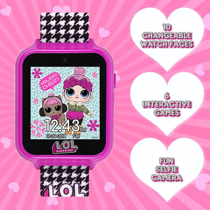 LOL Surprise Kids Smart Watch with Camera, Games, Voice Recorder, Step Counter, 10 Unique Watch Faces, Alarm, Timer, and Calculator - Fun Tech Toy for Kids