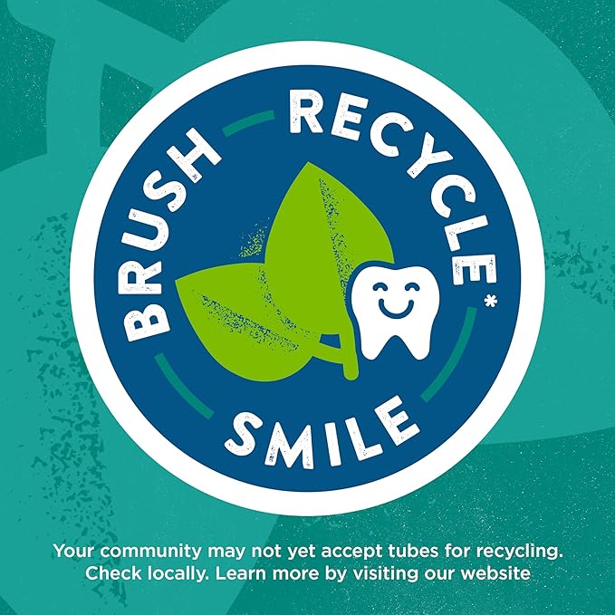 - RECYCLABLE TUBE: Look for the blue recycling flag, squeeze out as much toothpaste as you can, replace the cap, and recycle