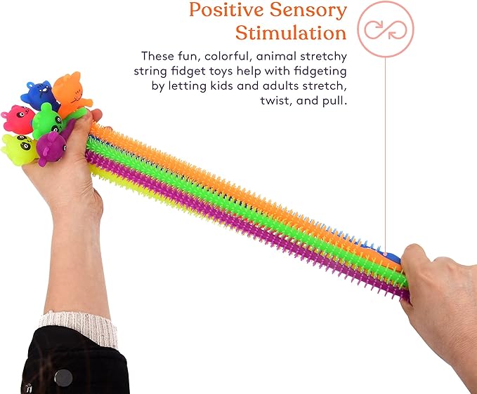 - Positive Sensory Stimulation – These fun, colorful, animal stretchy string fidget toys help with fidgeting by letting kids and adults stretch, twist, and pull.