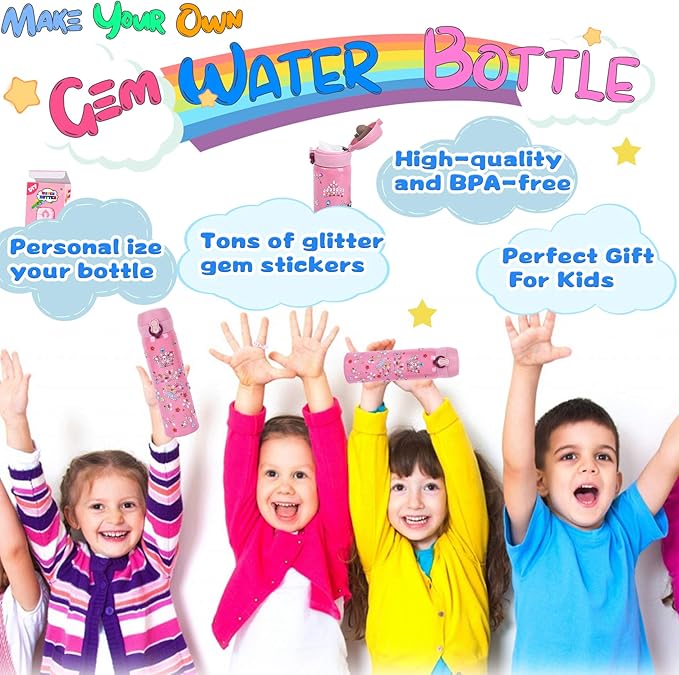 - 【DECORATE WATER BOTTLE】Foster Creativity with our water bottle craft kit, simply peel the gems from the sticker, apply them to make a unique water bottle, easy & fun for kids at a young age as well