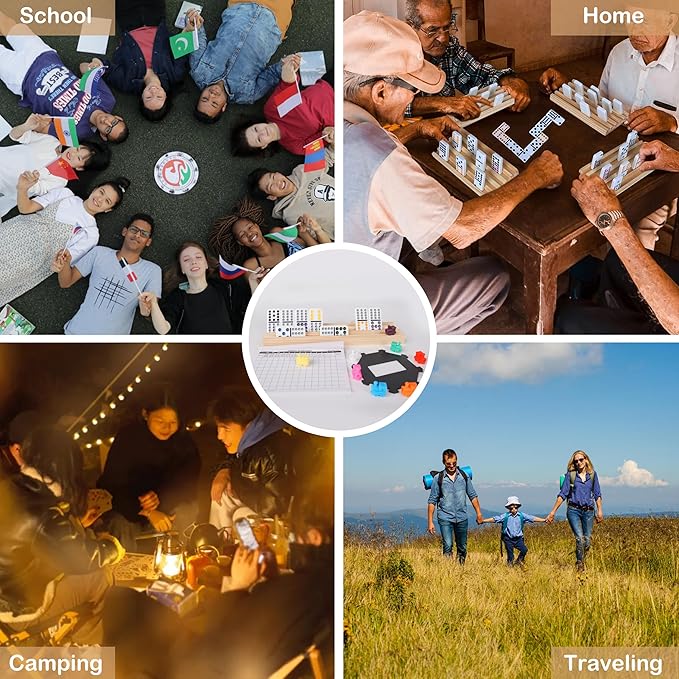 - More Funny games This Classical dominoes set providing fun of hours for families, friends and kids. It can freely arranged different shapes and piled up. Whatever play Chicken Foot or Mexican Train games, that is really best choice!