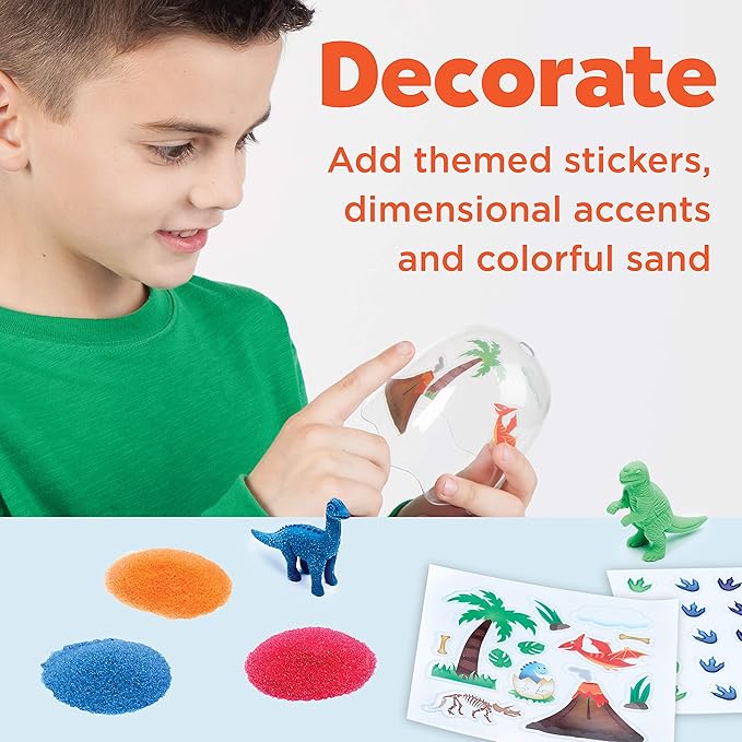 - DINOSAUR CRAFT: Decorate, plant, and grow your own mini terrarium kit for kids in a dinosaur egg-shaped environment. This craft for boys ages 6-8 is a fun and engaging toy! Use the quick-grow seeds and fun Jurassic-themed decorations to bring your dinosaur kids toy to life (Dinosaur Garden measures 5.25” h x 3” w.)