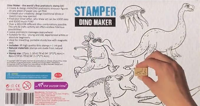 - The Purple Cow STAMPER is a revolution art and craft activity. The kit is contained of 36 stamps that together they create different dinosaur shapes. Finally, your kid does not have to be talented in arts and crafts to create beautiful designs.
