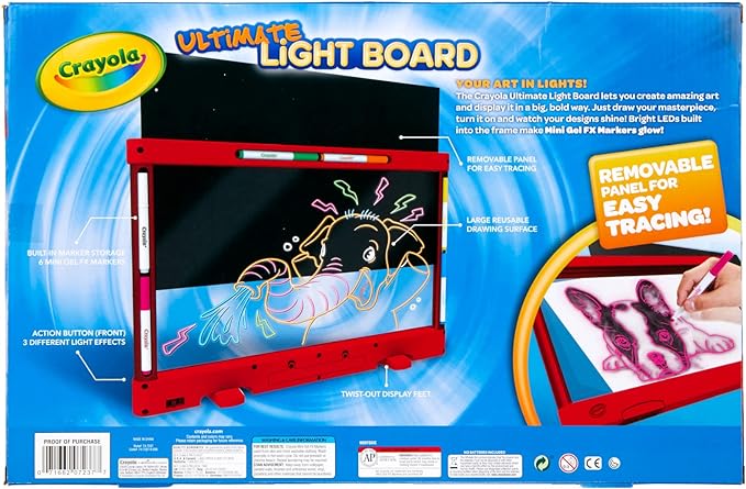 - DRAWING LIGHT BOX: Create amazing art and display it in a big, bold way Just draw your masterpiece and turn on the light board to watch your designs shine. Easily wipe away old drawings when you're ready to start anew.