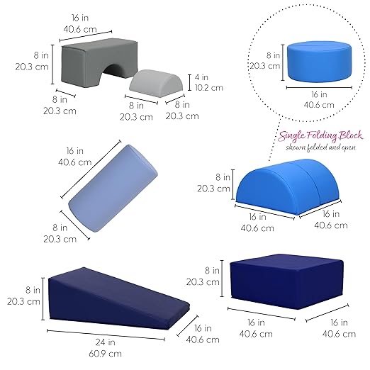 - SAFE AND QUALITY ASSURED: Features a non-slip base, GREENGUARD Gold Certified for low emissions, and complies with flammability regulations, ensuring a safe play environment for kids aged 10+ months. See detailed dimensional image for soft climbing blocks measurements; adult supervision required