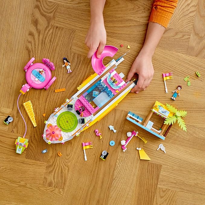 LEGO Friends Party Boat 41433 Including LEGO Friends Emma, Andrea and Ethan Mini-Doll Figures, Beach Store and Flamingo Party Boat, Great Summer Toy for Kids (640 Pieces)