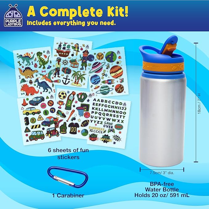 PURPLE LADYBUG Decorate Your Own Water Bottle for Boys - Crafts for Boys Ages 6-8, Birthday Gift for 5-10 Year Old Boy, Easter Gifts for Kids Boys, Valentines Day Gift