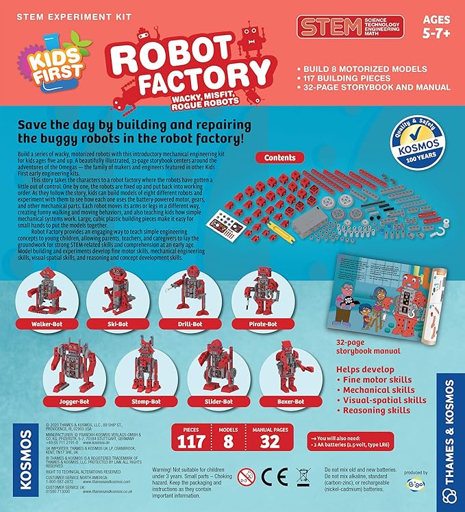 Thames & Kosmos Kids First Robot Factory: Wacky, Misfit, Rogue Robots STEM Experiment Kit | Hands-on Model Building for Young Engineers | Build 8 Motorized Robots | Play & Learn with Storybook Manual