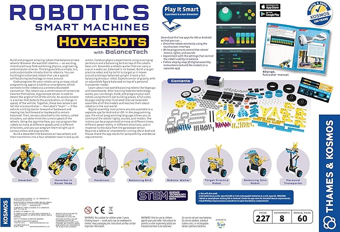 Thames & Kosmos Robotics: Smart Machines – HoverBots w/ BalanceTech STEM Experiment Kit | Build 8 Self-Balancing Robots | Color Manual & 3D Digital Assembly Instructions | Requires Tablet, Smartphone