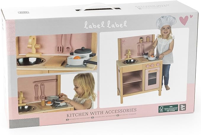 - REALISTIC SINK: The Label Label play sink features a realistic faucet that turns, allowing children to ‘wash’ their dishes just like in a real kitchen. This teaches kids important helping and cleaning skills.