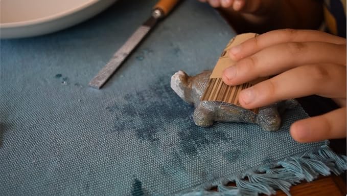 - āļøCARVING TIPS: Use the rasp to file the soapstone shape until your animal comes to life, then use the sandpaper to smooth away any file marks. Dip the soapstone sculpture in water to keep your art project mess free.