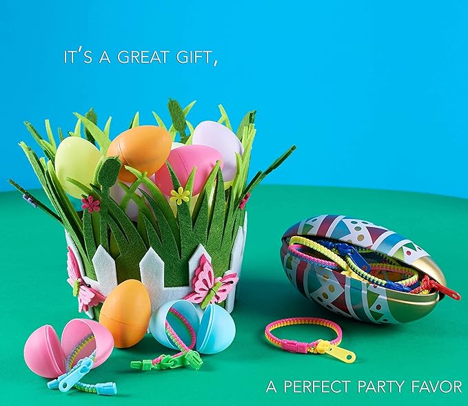 UpBrands 24 Easter Eggs Fillers Zipper Bracelets 6.5 Inches Sensory Toys Set, Kit for Birthday Party Favors for Kids, Goodie Bags, Class Valentines Gifts For Kids & Students Incentives