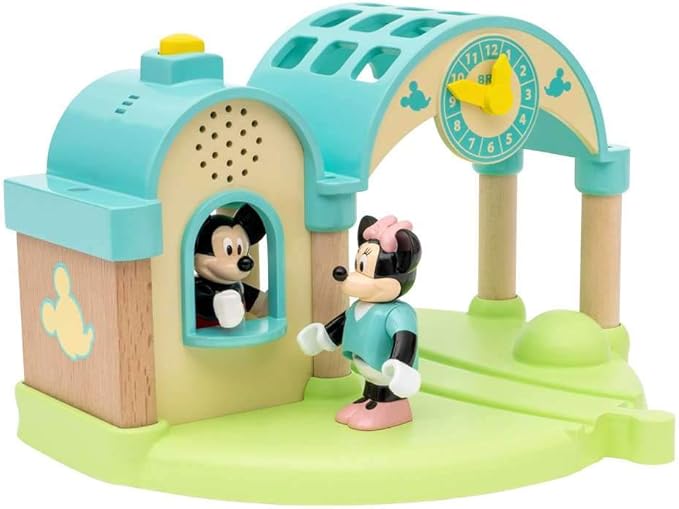 - Product includes – An adorable record & play train station, along with Mickey and Minnie figurines. A must have for any Disney fan and train lover. Batteries are included.