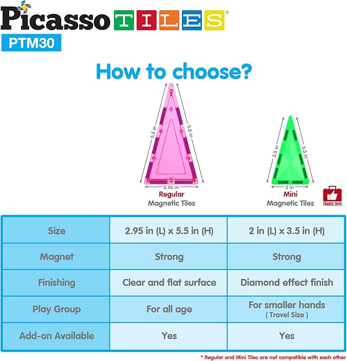 - MINI TRAVEL-SIZE SERIES - Dream big & build big, no limitations, scalable to build as big as desired by adding more building tiles to create the masterpiece. The 30 Piece magnetic building block toy playset MINI series features portable on-the-go tile blocks with unique diamond shape surface to be used as a stand alone set or in conjunction with other MINI magnet construction toy as integrated add-on pieces to offer OPEN-ENDED POSSIBILITIES of structures to nurture children creativity and intelligence
