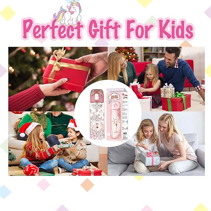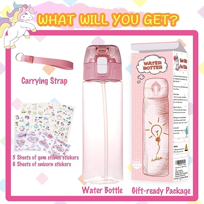 - 【BUILD YOUR OWN WATER BOTTLE】Kids have the chance to build a unique water bottle with gems & unicorn stickers, and they will love to drink more water in school