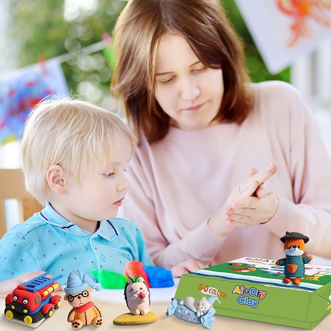 QMay Air Dry Clay 50 Colors-DIY Modeling Clay Starter Kit with Sculpting Tools, Great Gift for Artistic Kids