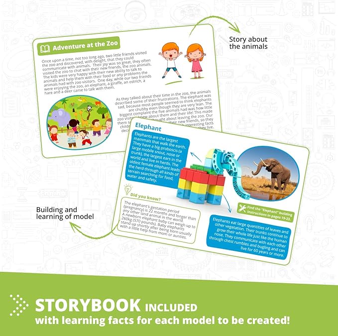 - EASY TO FOLLOW – This building kit provides 2 printed and 8 online instructions to build 10 engineering toys including an elephant, a giraffe, a spaceship, and many more. All the pieces can easily be stored and kept safe in their plastic tub. Handle color may vary.